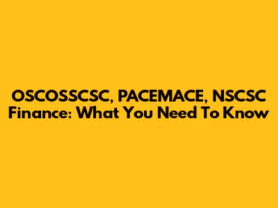 OSCOSSCSC, PACEMACE, NSCSC Finance: What You Need To Know