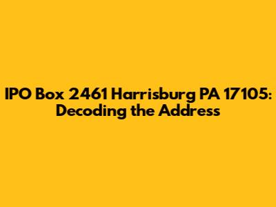 Hey everyone! Let's dive into the specifics of IPO Box 2461 Harrisburg PA 17105. This address might seem simple, but it holds a key to understanding a specific location in Harrisburg, Pennsylvania. We're going to break down what this address signifies, and why it's important. This address is essentially a Post Office Box (PO Box) assigned to a specific entity or individual for receiving mail. Understanding the layout and format of this address is crucial for anyone who needs to send or receive mail through this particular PO Box.