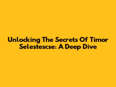 Unlocking The Secrets Of Timor Selestescse: A Deep Dive