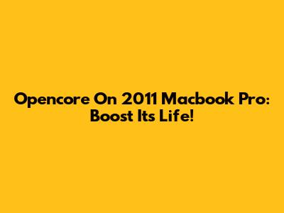 Opencore On 2011 Macbook Pro: Boost Its Life!