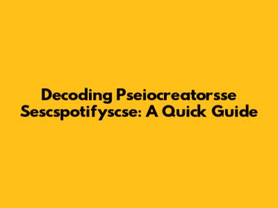 Decoding Pseiocreatorsse Sescspotifyscse: A Quick Guide