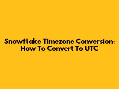 Snowflake Timezone Conversion: How To Convert To UTC