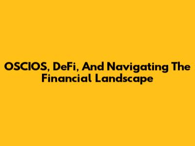 OSCIOS, DeFi, And Navigating The Financial Landscape