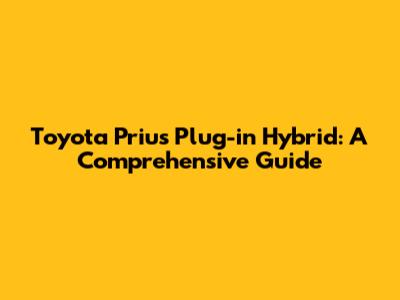 Toyota Prius Plug-in Hybrid: A Comprehensive Guide