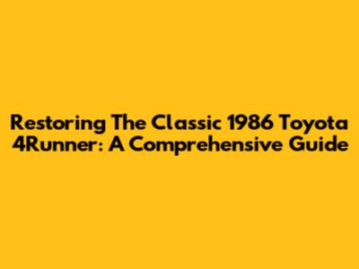 Restoring The Classic 1986 Toyota 4Runner: A Comprehensive Guide