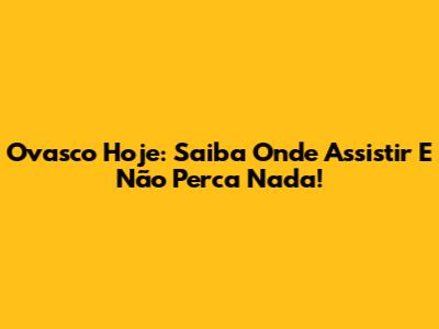 Ovasco Hoje: Saiba Onde Assistir E Não Perca Nada!