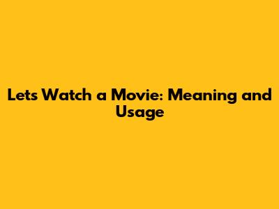 Have you ever wondered what the phrase "Let's watch a movie" really means? Or perhaps you're curious about its origins and how it's used in different contexts? Well, you're in the right place! In this article, we'll dive deep into the meaning of "Let's watch a movie," explore its cultural significance, and give you some tips on how to use it effectively. So grab your popcorn, sit back, and let's get started!