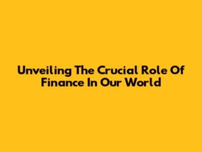 Unveiling The Crucial Role Of Finance In Our World