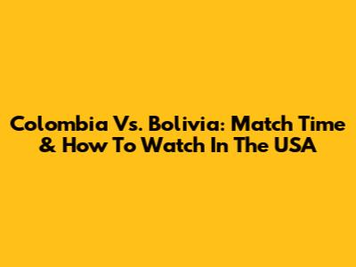 Colombia Vs. Bolivia: Match Time & How To Watch In The USA
