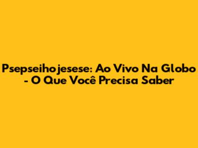 Psepseihojesese: Ao Vivo Na Globo - O Que Você Precisa Saber