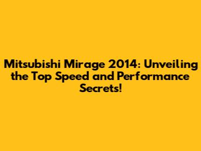 Mitsubishi Mirage 2014: Unveiling the Top Speed and Performance Secrets!