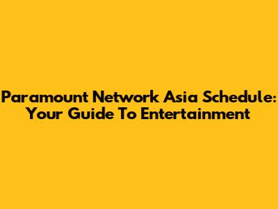 Paramount Network Asia Schedule: Your Guide To Entertainment