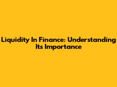 Liquidity In Finance: Understanding Its Importance