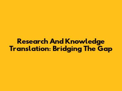 Research And Knowledge Translation: Bridging The Gap