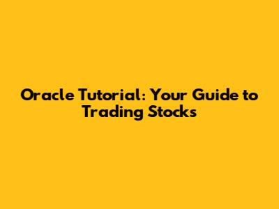 Hey there, future stock market wizards! Ready to dive into the world of stocks and learn how to navigate the market like a pro? This Oracle tutorial is your secret weapon, a comprehensive guide to understanding the ins and outs of trading stocks. We'll cover everything from the basics to some more advanced strategies, equipping you with the knowledge and confidence to make informed investment decisions. Forget those confusing financial jargon – we're keeping it real and making it easy to understand. So, grab your favorite drink, get comfy, and let's unlock the secrets of the stock market together!