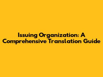 Issuing Organization: A Comprehensive Translation Guide