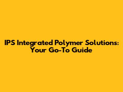 IPS Integrated Polymer Solutions: Your Go-To Guide