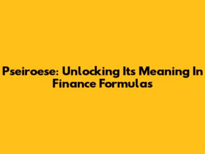 Pseiroese: Unlocking Its Meaning In Finance Formulas