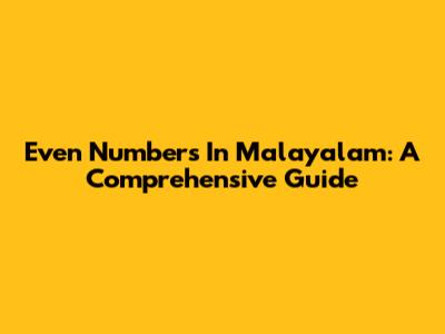Even Numbers In Malayalam: A Comprehensive Guide