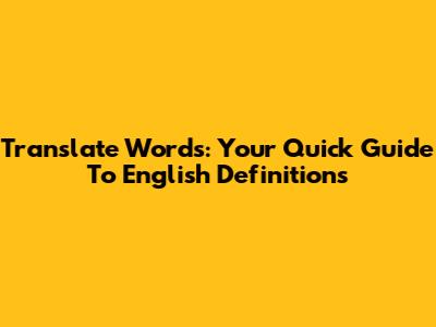 Translate Words: Your Quick Guide To English Definitions