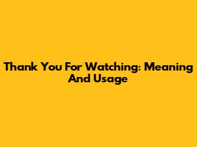 Thank You For Watching: Meaning And Usage