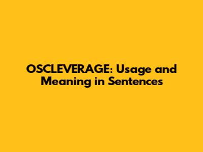 Understanding how to use specific terms within sentences is crucial for effective communication. In this article, we will explore the meaning and usage of OSCLEVERAGE in sentences, providing a comprehensive guide for anyone looking to enhance their understanding of this term. We will look into its definition, explore example sentences, and consider its context, so you can confidently integrate it into your vocabulary.