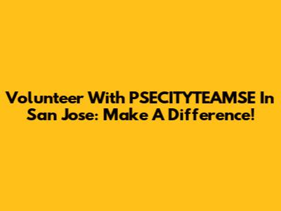 Volunteer With PSECITYTEAMSE In San Jose: Make A Difference!