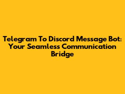Telegram To Discord Message Bot: Your Seamless Communication Bridge