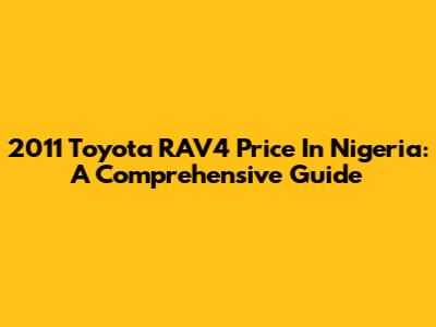 2011 Toyota RAV4 Price In Nigeria: A Comprehensive Guide