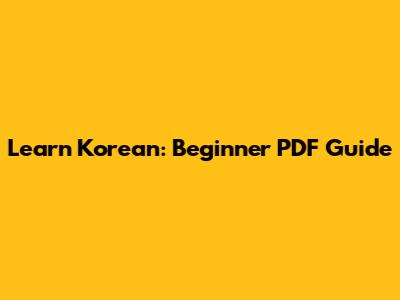 Learn Korean: Beginner PDF Guide