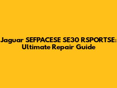 Jaguar SEFPACESE SE30 RSPORTSE: Ultimate Repair Guide