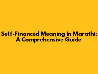 Self-Financed Meaning In Marathi: A Comprehensive Guide
