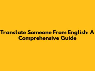 Translate Someone From English: A Comprehensive Guide