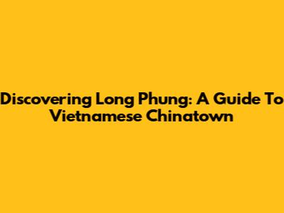 Discovering Long Phung: A Guide To Vietnamese Chinatown