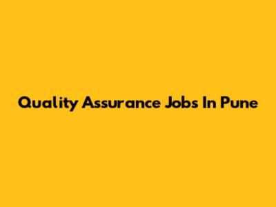 Quality Assurance Jobs In Pune