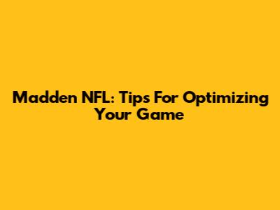 Madden NFL: Tips For Optimizing Your Game