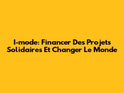 I-mode: Financer Des Projets Solidaires Et Changer Le Monde