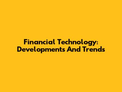 Financial Technology: Developments And Trends