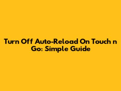 Turn Off Auto-Reload On Touch 'n Go: Simple Guide