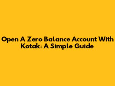 Open A Zero Balance Account With Kotak: A Simple Guide