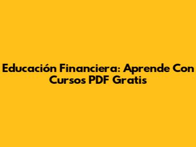 Educación Financiera: Aprende Con Cursos PDF Gratis