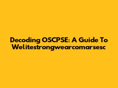 Decoding OSCPSE: A Guide To Welitestrongwearcomarsesc