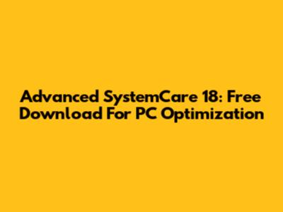 Advanced SystemCare 18: Free Download For PC Optimization