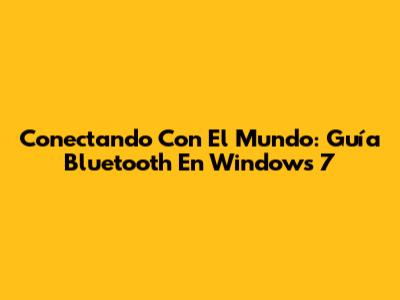 Conectando Con El Mundo: Guía Bluetooth En Windows 7