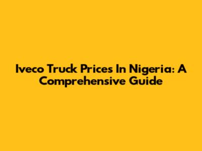 Iveco Truck Prices In Nigeria: A Comprehensive Guide