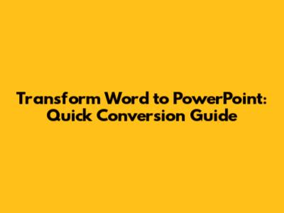 Online conversion tools are a quick and hassle-free way to transform your Word documents into PowerPoint presentations. These tools are particularly useful for those who need to convert files on the go or don’t have access to Microsoft Office. However, it’s important to exercise caution when using online converters, especially with confidential or sensitive documents. Always choose reputable and trustworthy services that prioritize data security and privacy. Additionally, be prepared to review and edit the resulting presentation to ensure it meets your specific requirements and quality standards. While online converters can save time and effort, they may not always produce perfect results, so manual adjustments may be necessary to achieve the desired outcome.