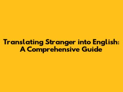 So there you have it, guys! Translating stranger into English is more than just finding a single equivalent word. It’s about understanding the subtle nuances of the English language and choosing the word or phrase that best fits the specific context. From "unknown person" to "suspicious character," the English language offers a rich variety of ways to express the concept of a stranger.