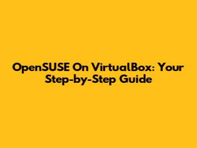 OpenSUSE On VirtualBox: Your Step-by-Step Guide
