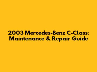 2003 Mercedes-Benz C-Class: Maintenance & Repair Guide