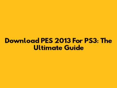 Download PES 2013 For PS3: The Ultimate Guide